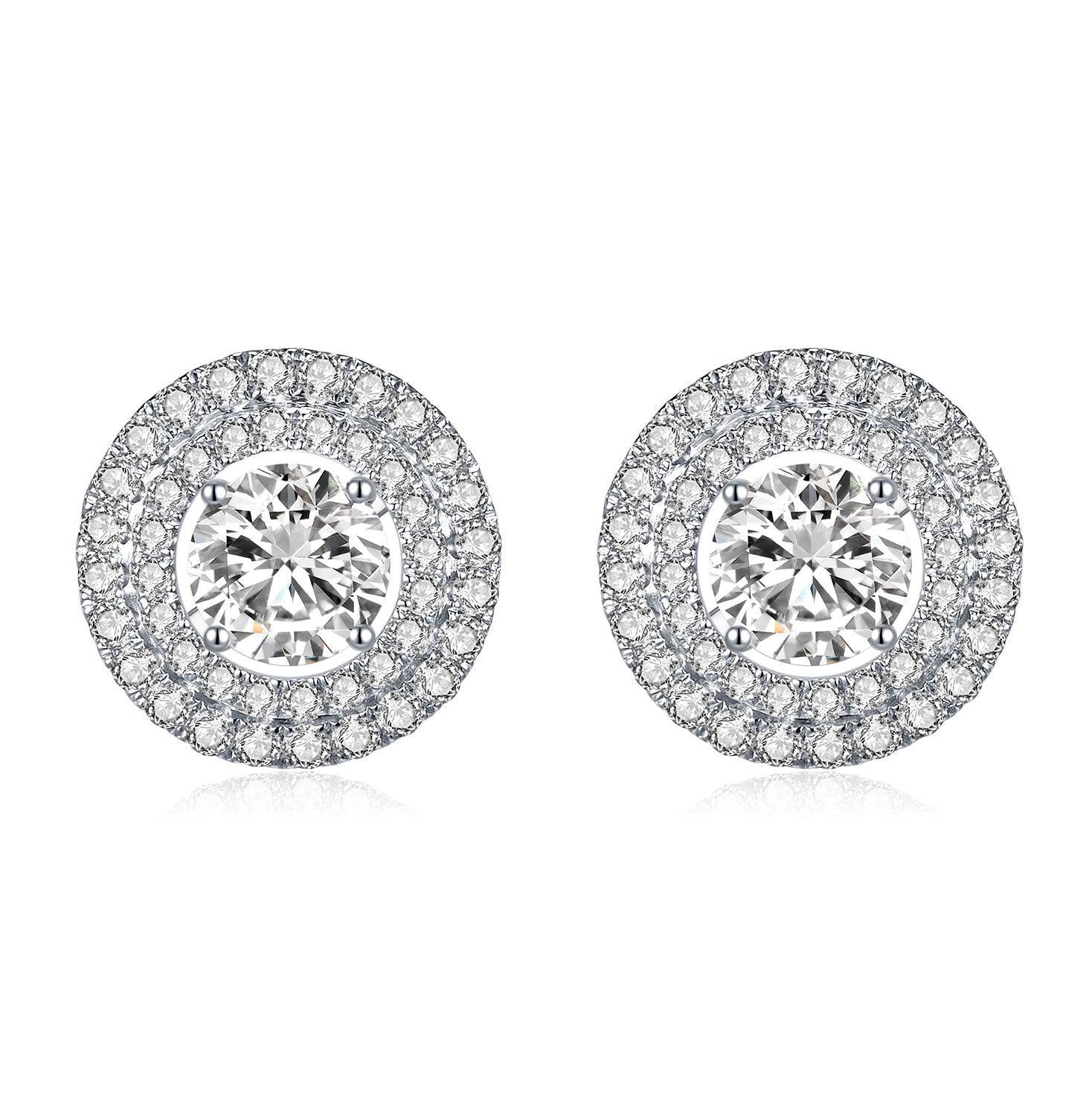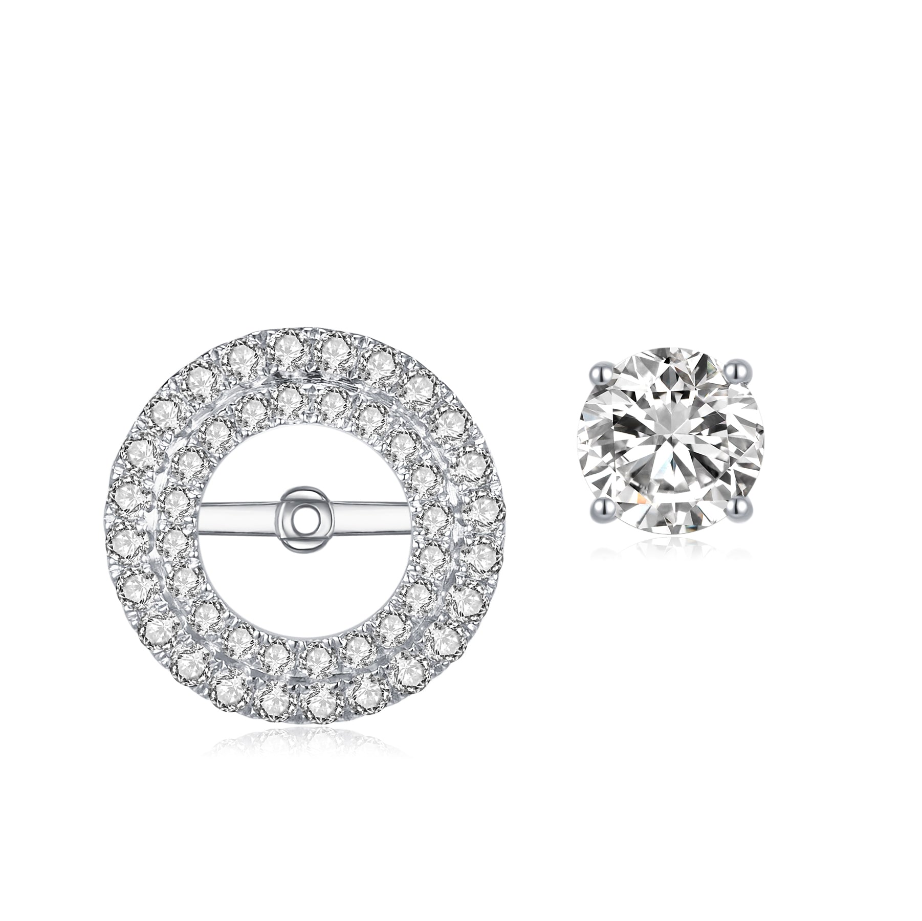 Versatile elegance meets refined craftsmanship in these Convertible Halo Solitaire Stud Earrings. Featuring a removable round lab-grown diamond set in a rhodium-plated 14K gold four-prong setting, the design offers two distinct looks: wear the solitaire alone for understated sophistication, or attach the outer double halo of pavé-set diamonds for amplified brilliance.