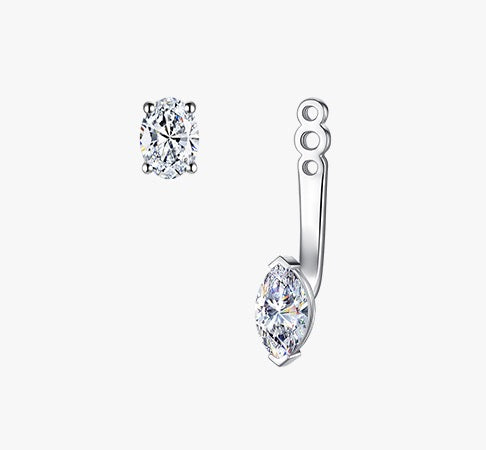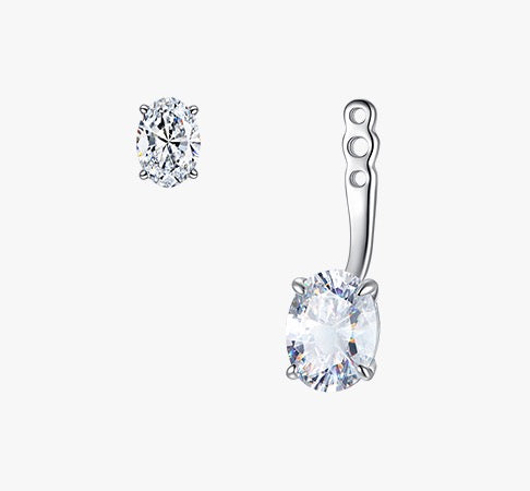 Sophisticated versatility meets refined design in these Convertible Round Solitaire Stud Earrings. The central oval lab-grown diamond is securely set in a rhodium-plated 14K gold four-prong setting with push-back closure, offering a timeless classic look. For a more striking statement, attach the removable oval/marquise jacket, creating a dynamic silhouette that enhances brilliance and elevates any occasion.